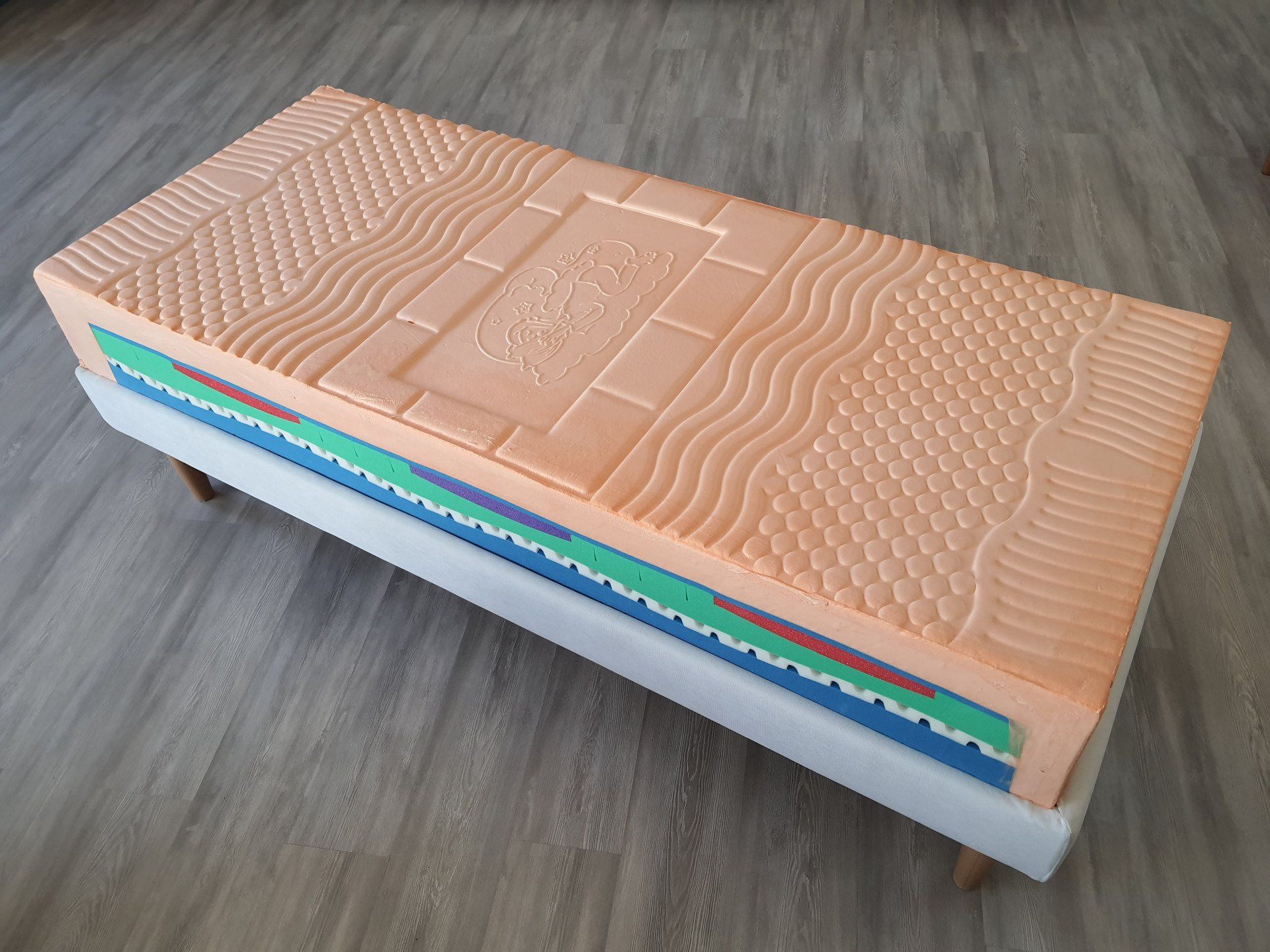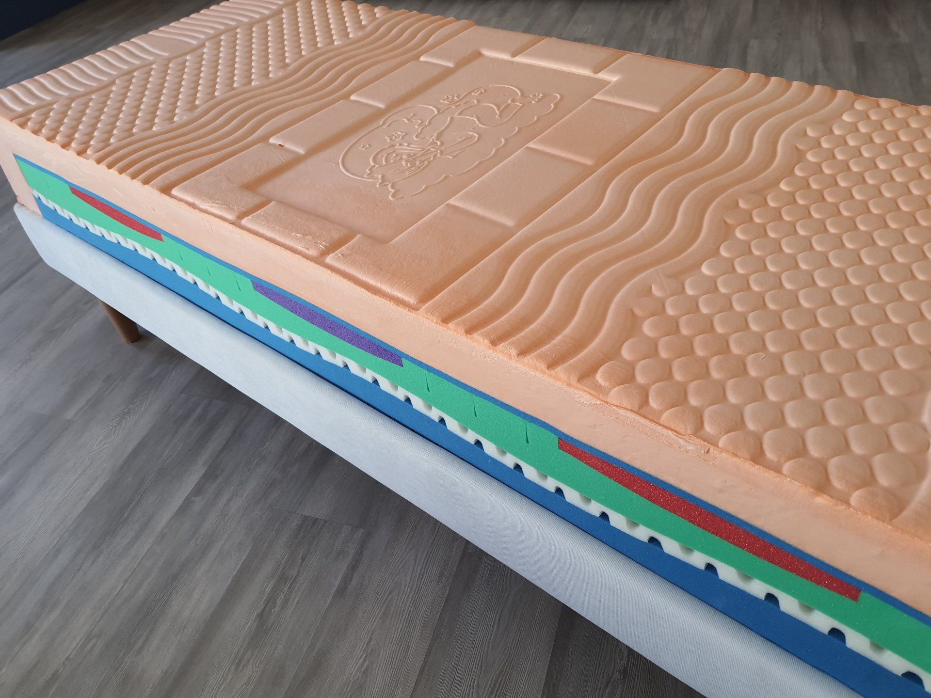 Materasso in memory a stampo con 7 zone a portanza differenziata e segue perfettamente i movimenti grazie al molleggio indipendente con una perfetta distribuzione dei pesi.
